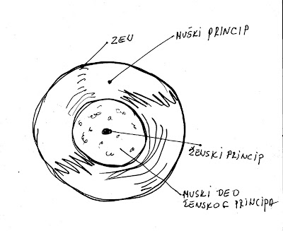 U muškom delu ženskog principa se odvija stvaranje života u svetlosti. Ego je u njemu svuda prisutan i muški princip ga nadvladava kroz trajanje.