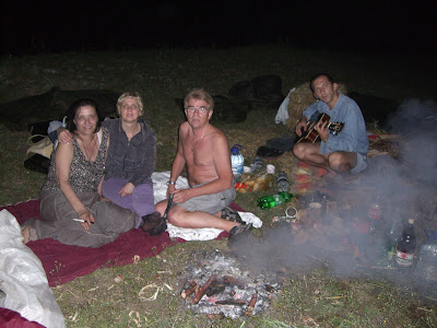 Upalili smo vatru da nam prostor obasjava i da na štapičima pečemo kobasice za većeru. Šator nismo uspeli da postavimo jer je bilo kasno pa u mraku nismo videli dobro. Razastrli smo šatorsko krilo po zemlji i na njemu sedeli.